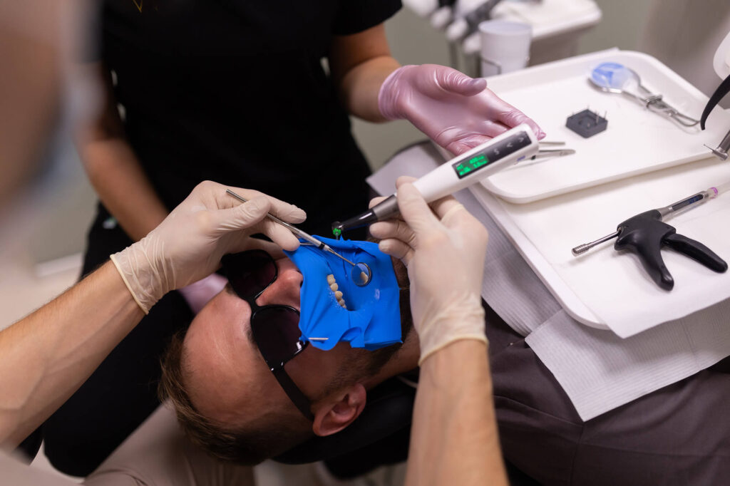 NIE! Ošetrenie je vykonávané v lokálnej anestézií. Pacienti to nepociťujú nijak inak, ako keď sa im robí štandardná biela výplň.
